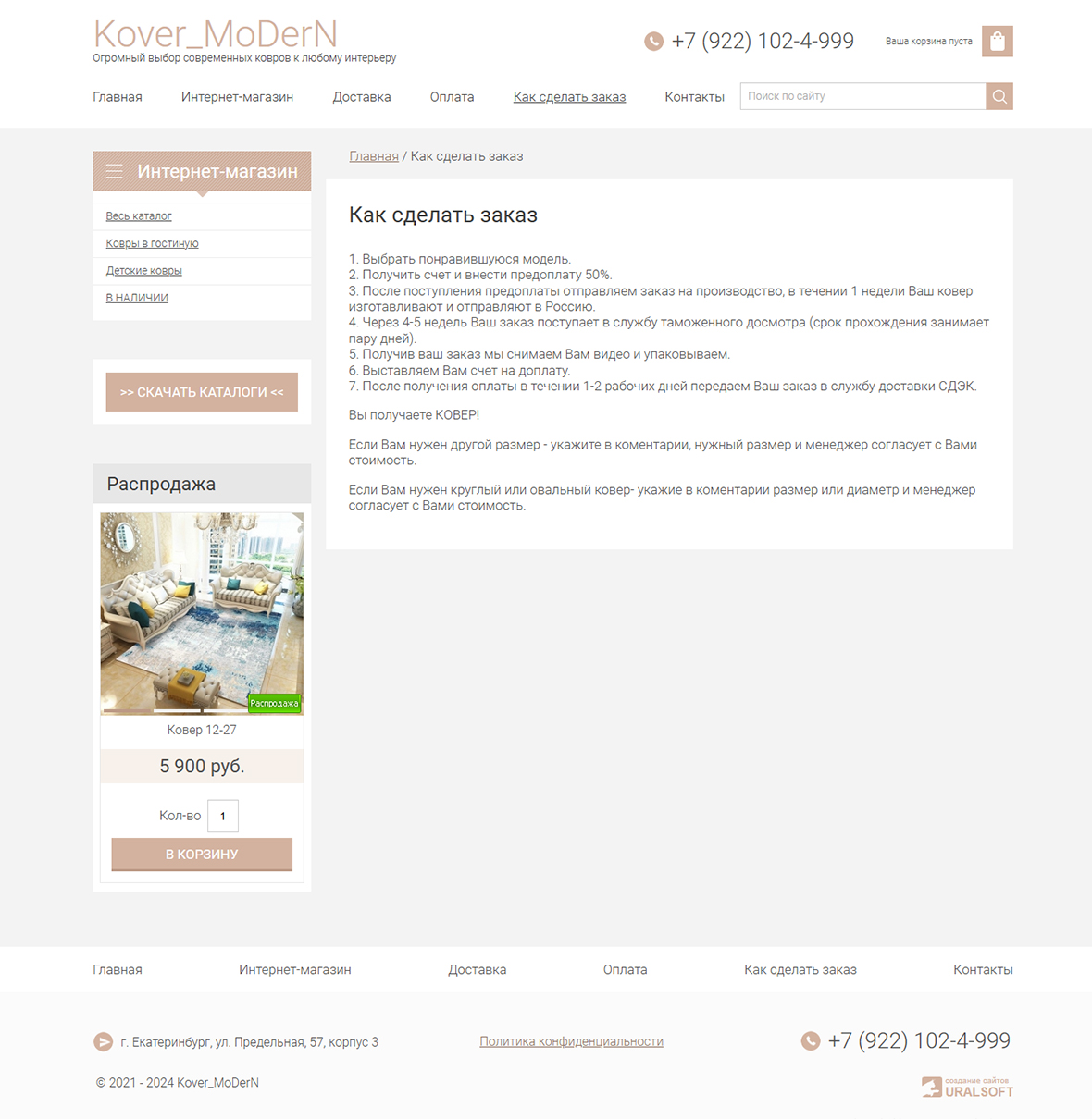 Сайт kovermodern.ru предлагает широкий выбор ковров из натуральных и искусственных материалов. В каталоге