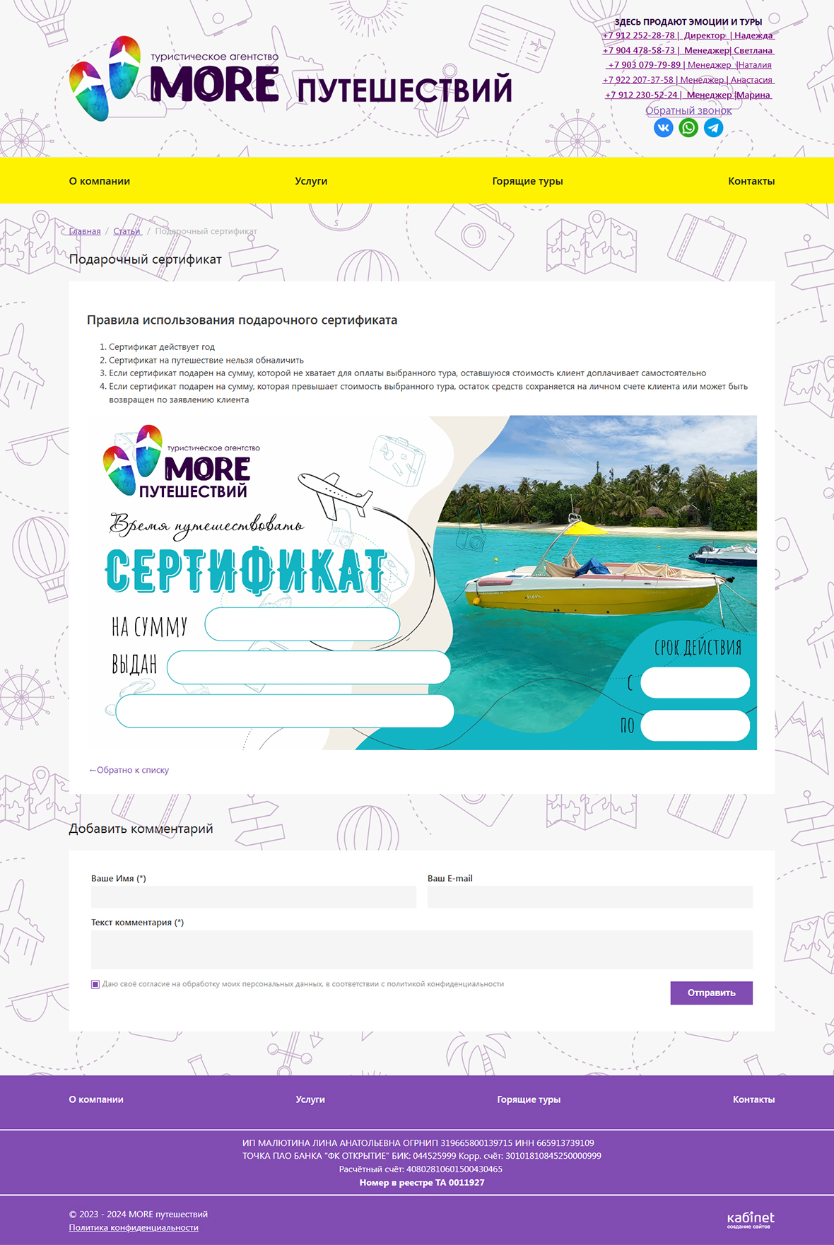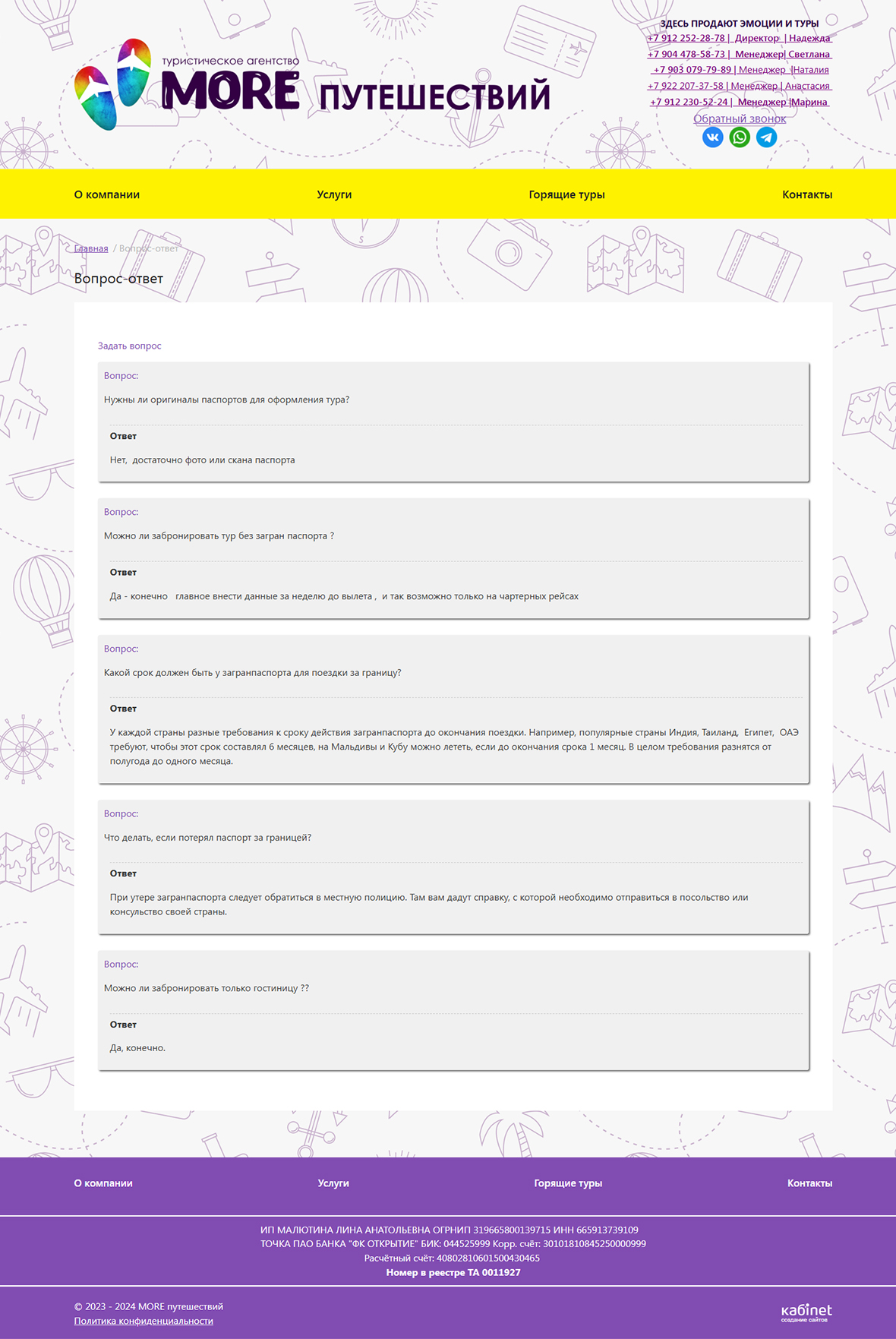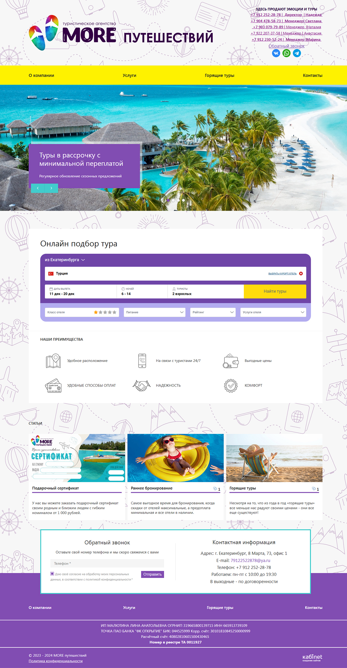 Сайт «море-путешествий.рф» предлагает разнообразные туристические услуги, включая горящие туры, пляжный