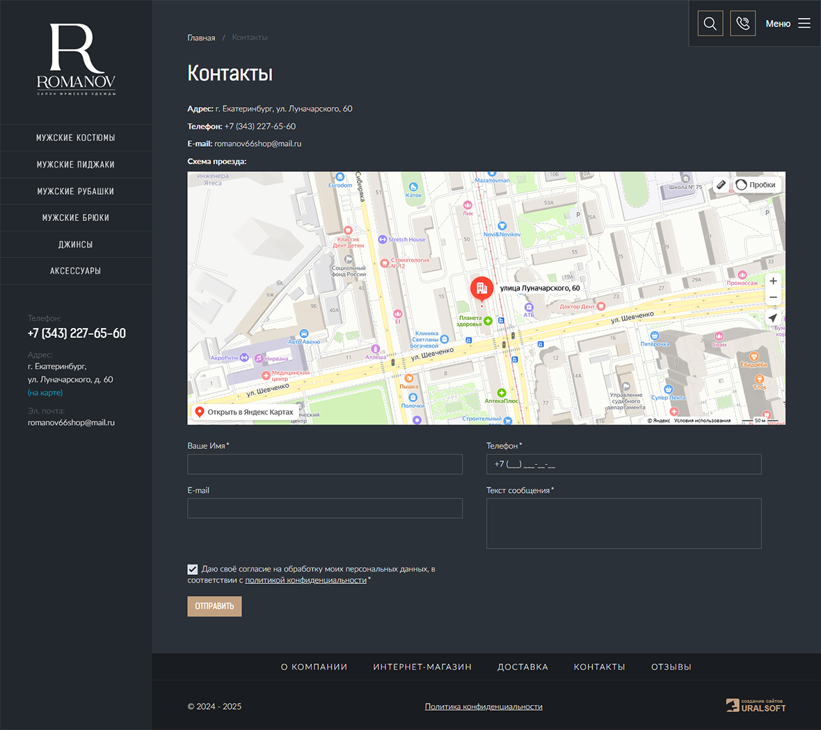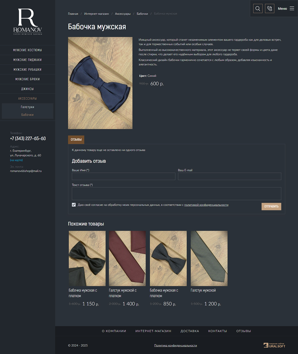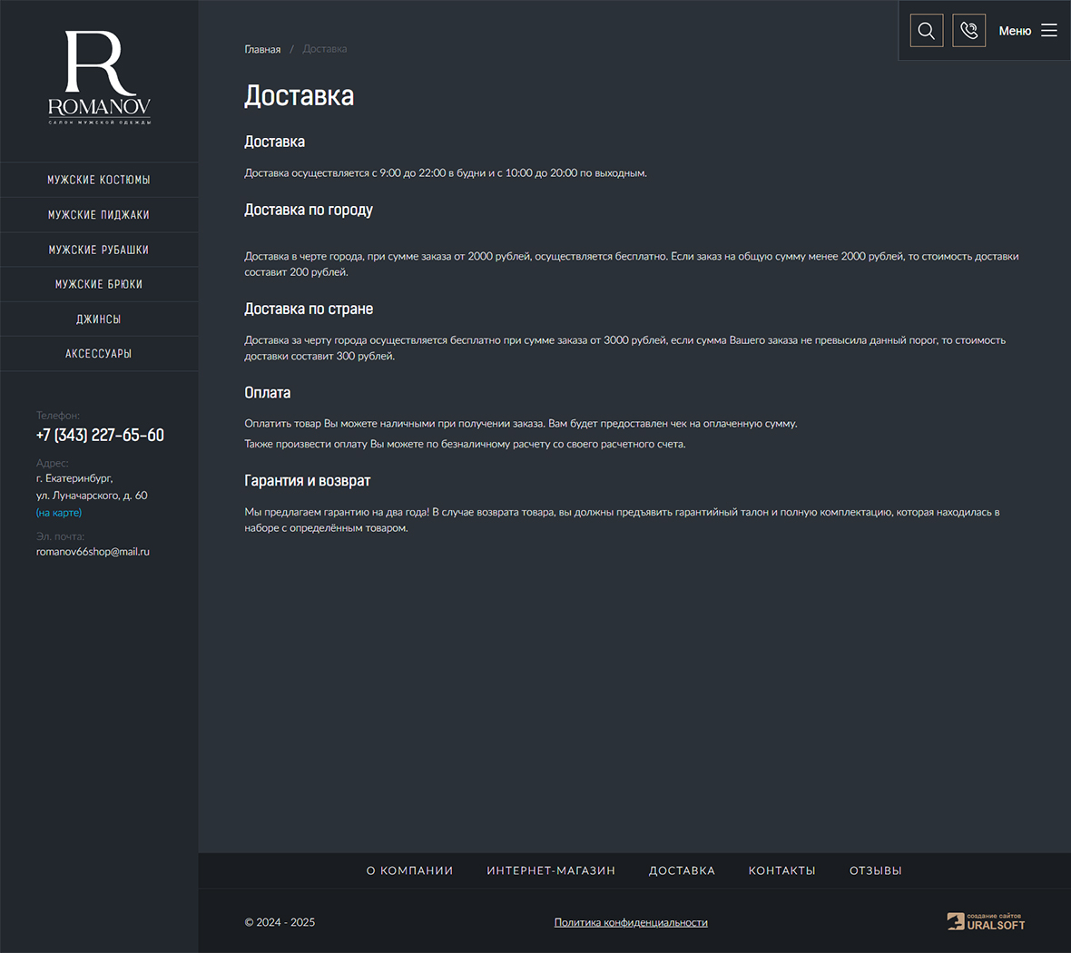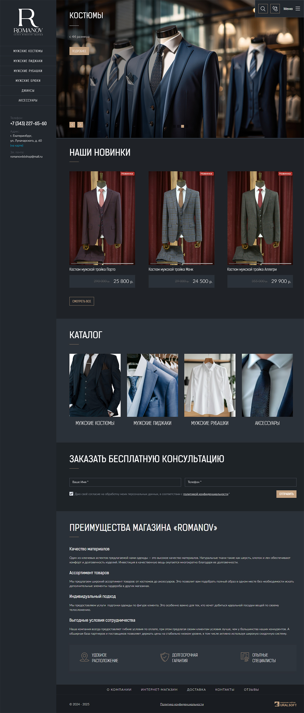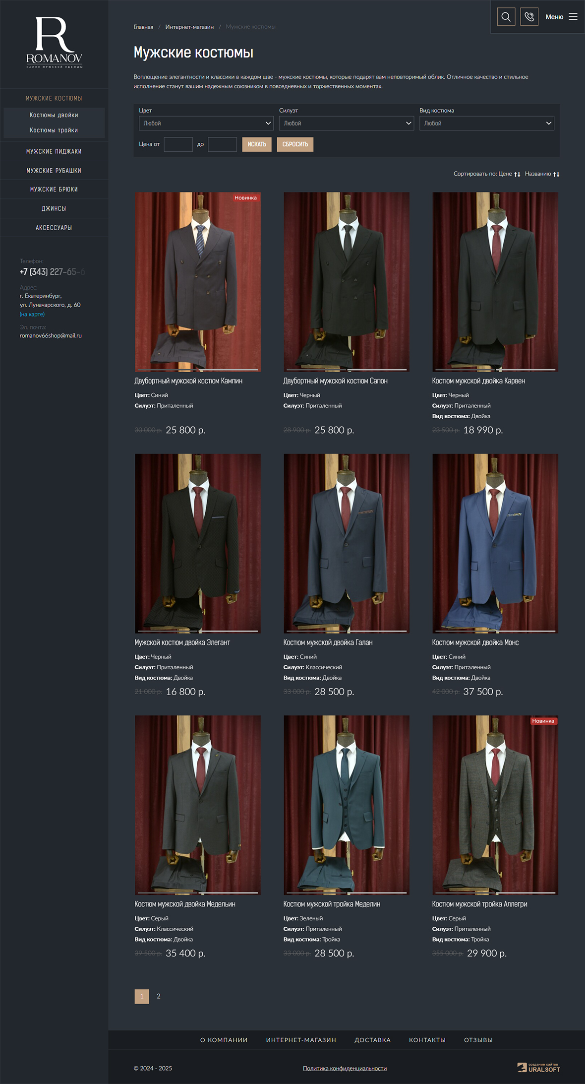 Сайт romanov66.ru предлагает мужскую одежду высокого качества. В магазине представлен широкий ассортимент