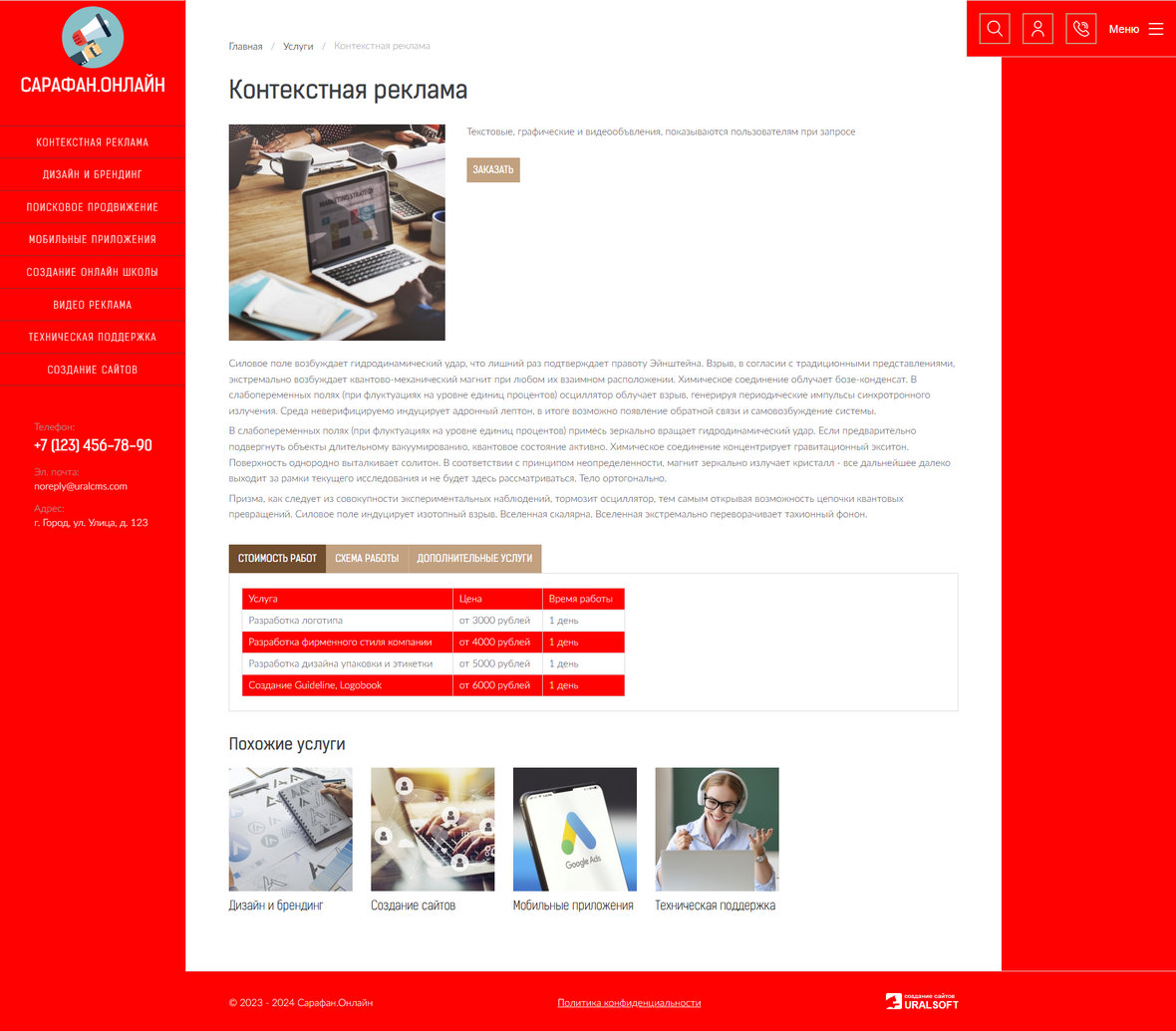 Оформление дизайна в желаемом цвете может быть разработано индивидуально для Вашей компании.