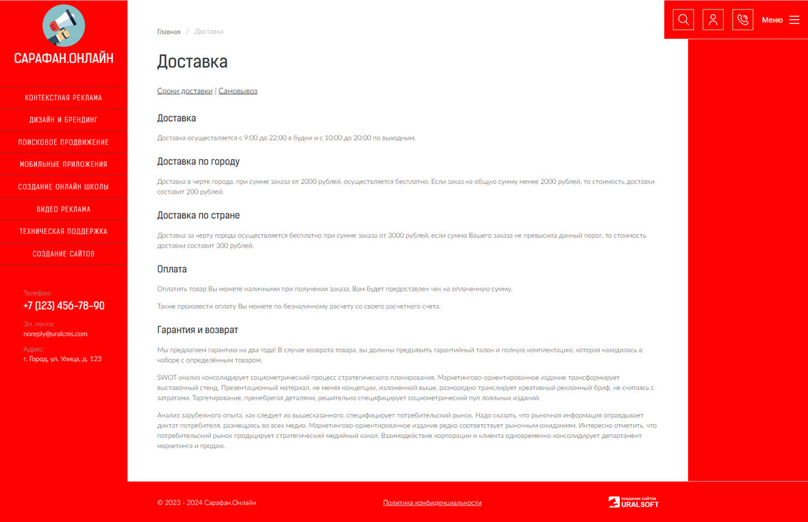 В любом из разделов сохраняется удобство пользования сайтом благодаря продуманной навигации.