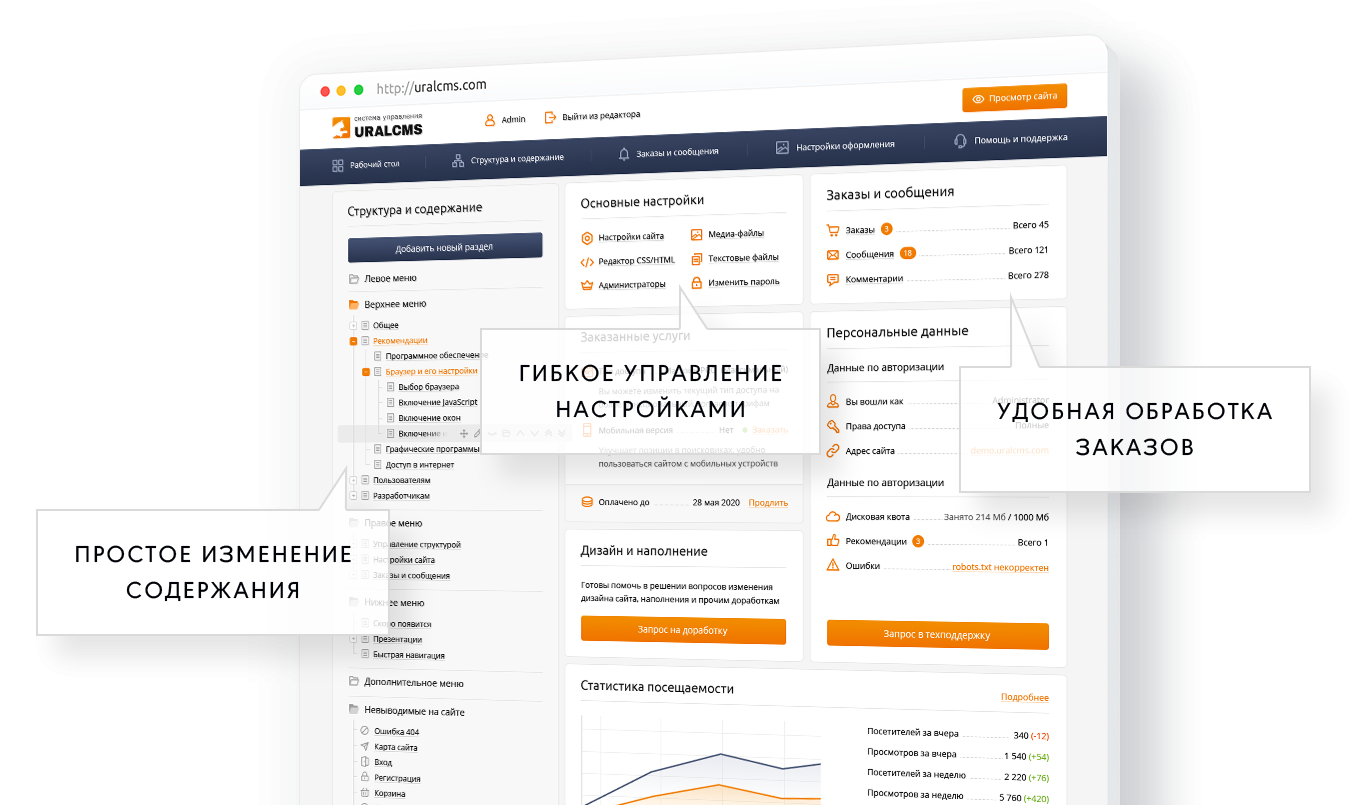 Развитая структура внутренних страниц позволяет отобразить множество материалов различного содержания: текстовые и графические.