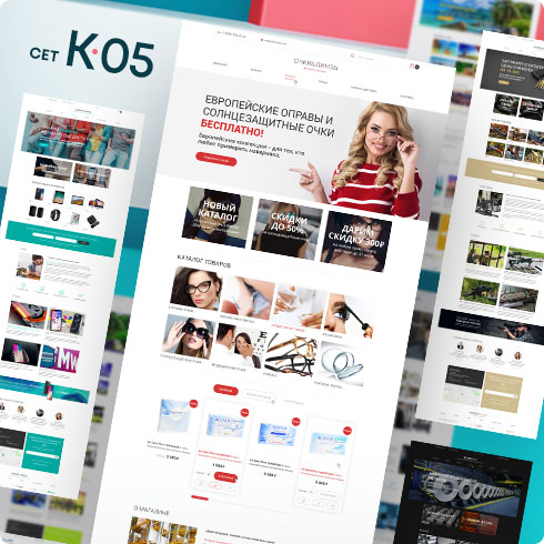 Как и все другие наши сеты, сет K-05 имеет уже готовую верстку для вывода не только на обычных мониторах, но также смартфонах и планшетах. Адаптивная верстка сета K-05 позволяет посетителям вашего сайта просматривать его содержимое в удобном виде на различных устройствах, а также соответствует требованиям SEO.